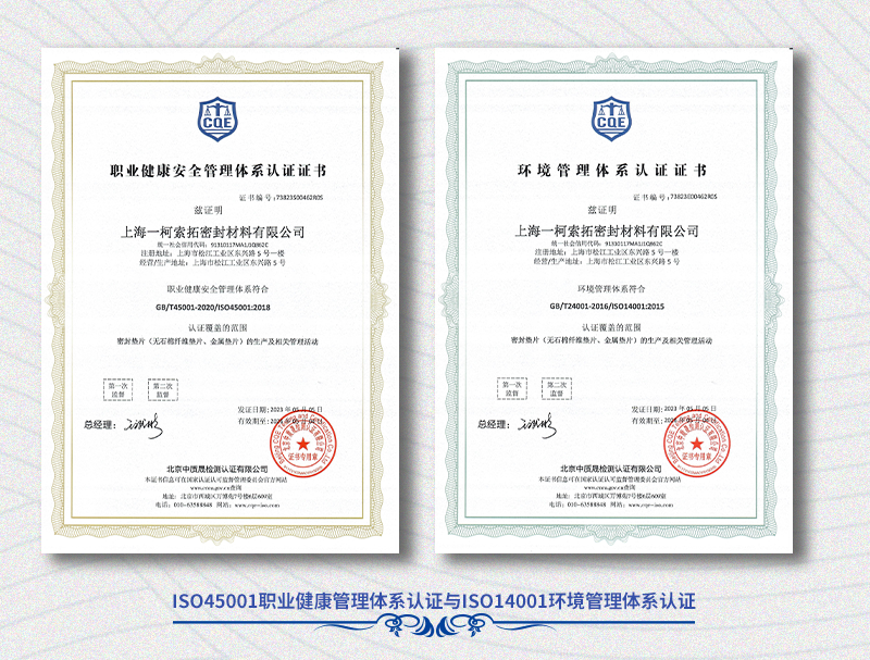 SealTex has been committed to the production and sales of 100% asbestos-free environmental sealing gaskets and high-temp thermal insulation products,  participate in a number of National Standards establishment, engineering support to the customers such as FUJI test and FEA,. SealTex has passed ISO9001, IATF16949, ISO14001, ISO45001 and obtained local GC special equipment manufacturing licence.